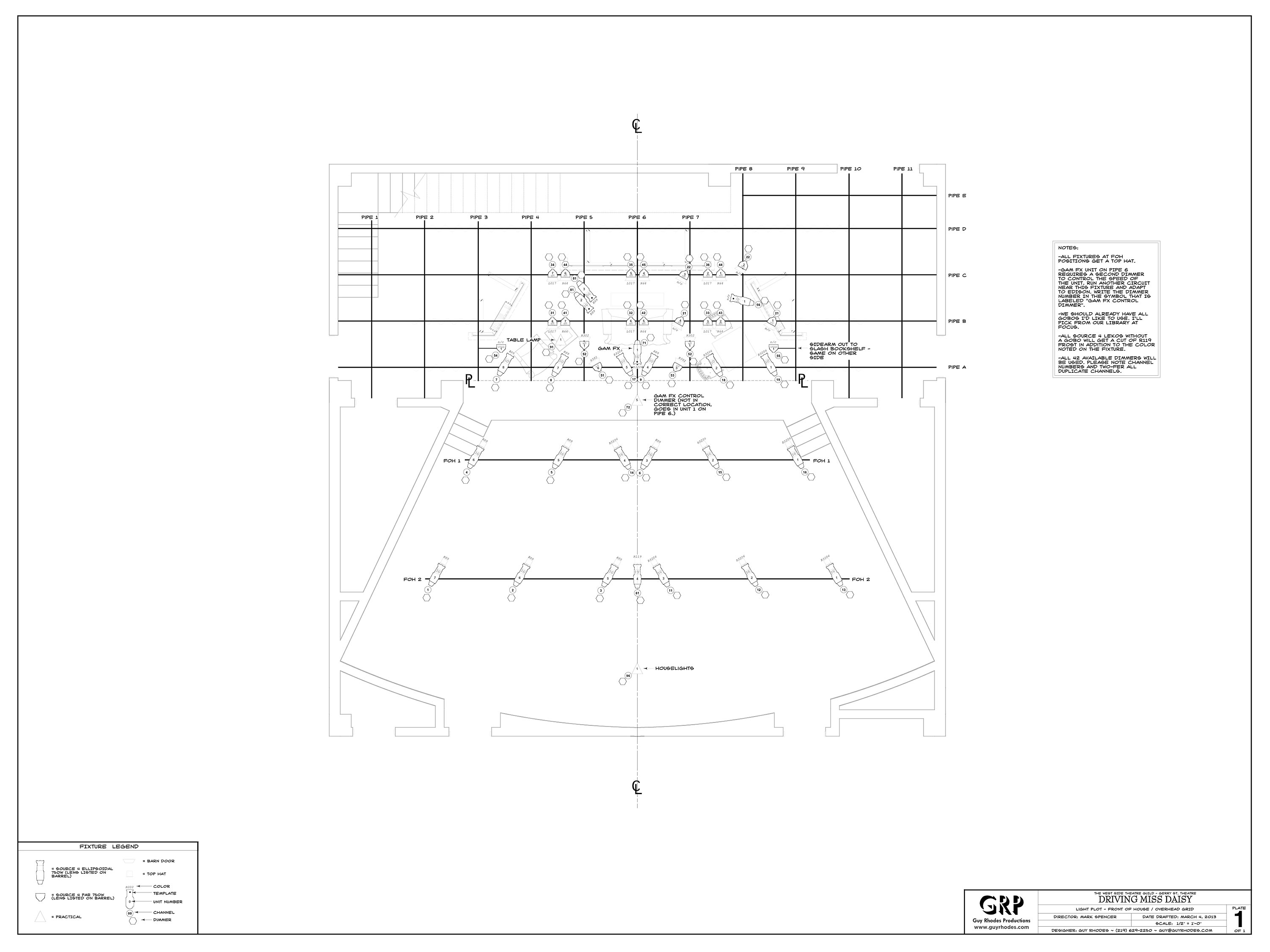 Click to see a larger view of the light plot, drafted using Vectorworks.
