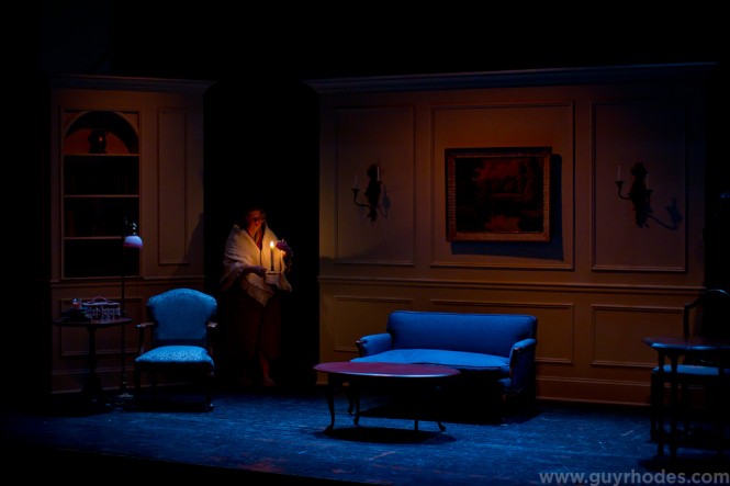 An early morning power outage scene at Daisy’s house took me completely by surprise in rehearsal. It wasn’t until our first tech run-through that I saw that Daisy was going to carry a lit candle into the living room at the top of the scene. I allowed the lights to fade up slowly on an 8 count, allowing the natural candle light to briefly fill the entire theater. This kind of thing wouldn’t have worked in a larger space, but in a small theater like the Gerry Street, it worked very well!
