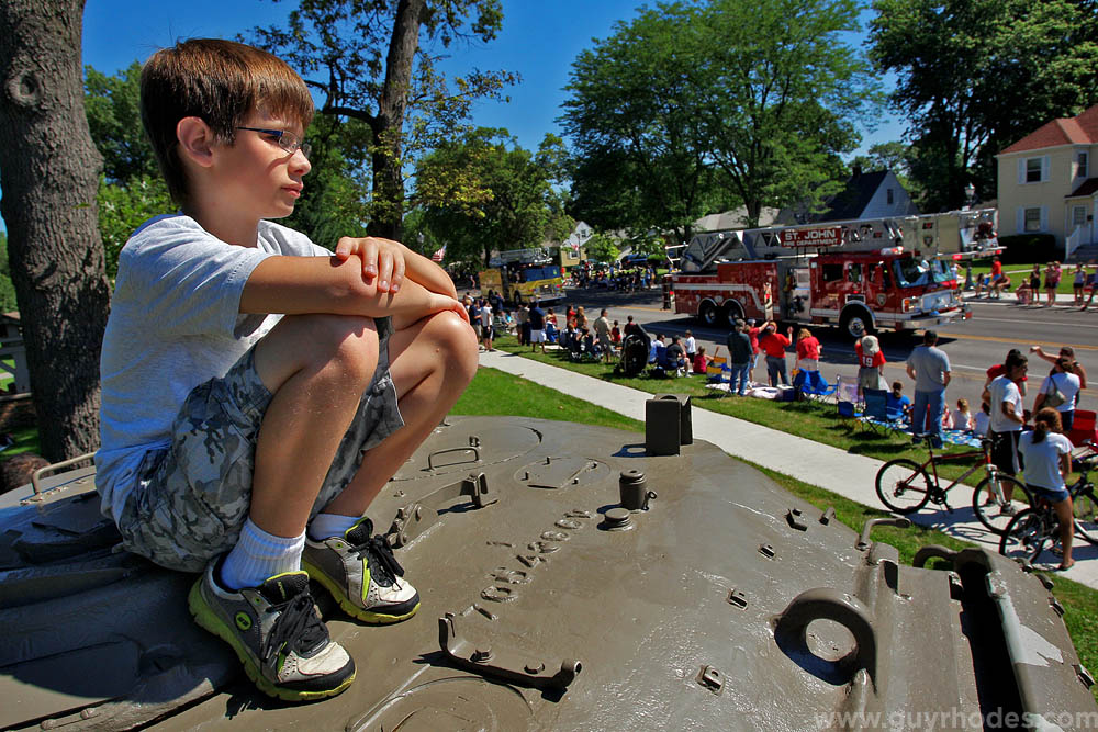 Twelve-year-old Dakota Betancourt of Griffith, Ind., gets a birds-eye-view of the Griffith Independence Day Parade from atop the Army tank in Central Park along Broad St., Monday, July 4, 2011.