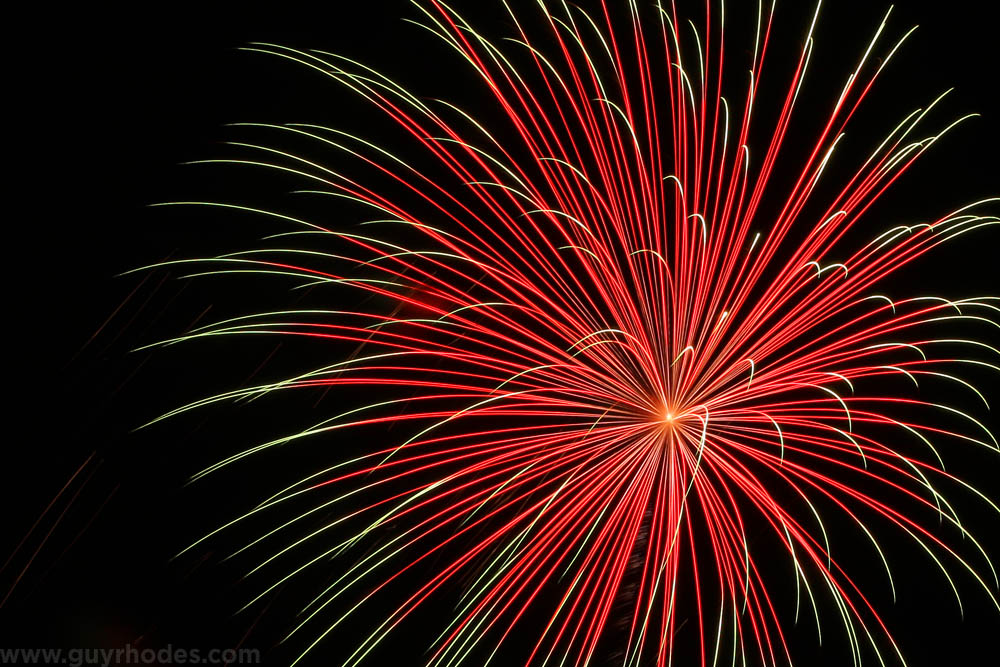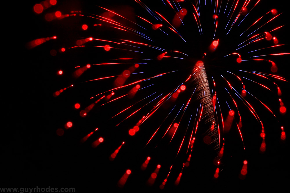 This is one of the first images where I tried racking the lens out of focus at the end of a two-second bulb exposure, causing the firework’s stars to blur into large, soft blobs.