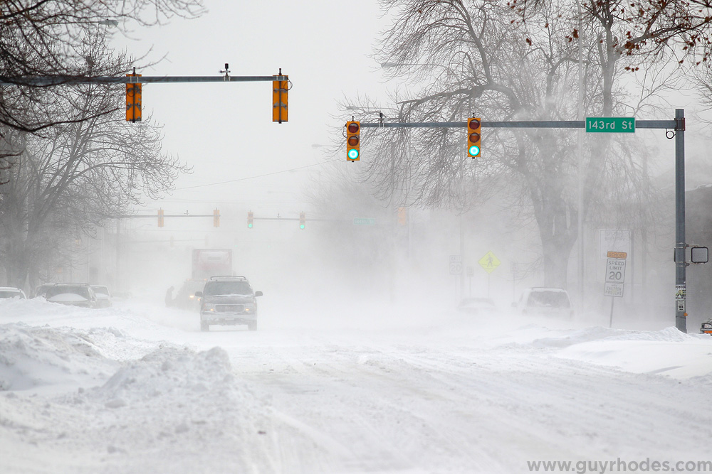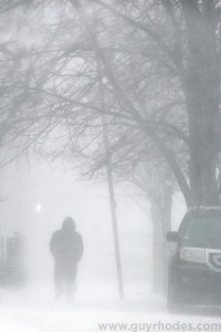 I won’t tell you that part of that young Guy Rhodes deep down inside me wasn’t excited as I waded through knee-deep snow cover last night while outside shooting video of the storm. Trying to stay afoot against 50 mile-per-hour wind gusts was challenging to say the least. I took refuge behind the video camera whenever possible to escape the stinging, numbing sensation of snow and ice pelting my face. Still, being able to experience nature’s awesome and historic power first-hand right in my own back yard was an opportunity I wasn’t willing to pass up.