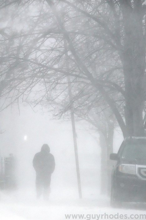 One of my final, favorite images from the storm is actually a still-frame from my video footage of a pedestrian walking west on 142nd St. in East Chicago.