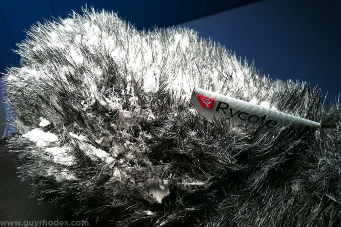 When I came in from shooting after about 45 minutes, anything that wasn’t covered (like my microphone windscreen pictured above) was completely caked with snow.