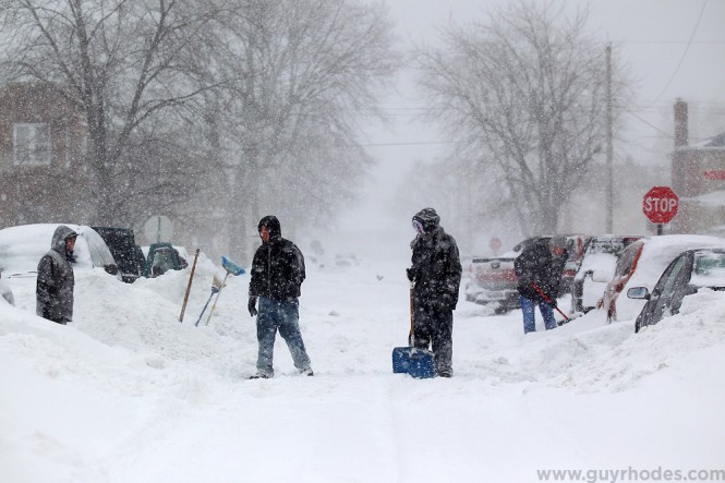 Residents in the 700 block of west 143rd St. shovel snow from around their vehicles.