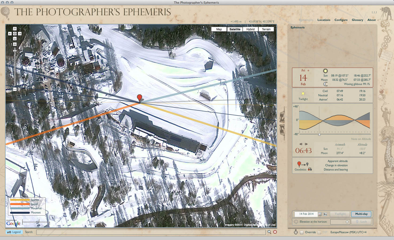 As you can see on the diagram, I’d have to stand directly in the middle of the cross country skiing course to make this work, and you can’t just stroll onto an Olympics course after hours