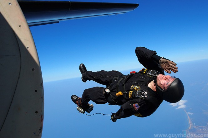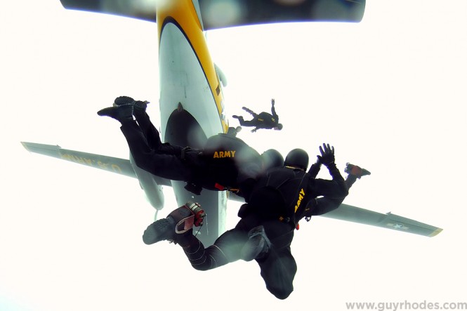 New technology allowed me to capture unique angles of The Golden Knights this year, such as this image of the team exiting the Fokker C31 aircraft, shot on a Go Pro Hero camera mounted to the helmet of Golden Knights Staff Sergeant Howard Sanborn.
