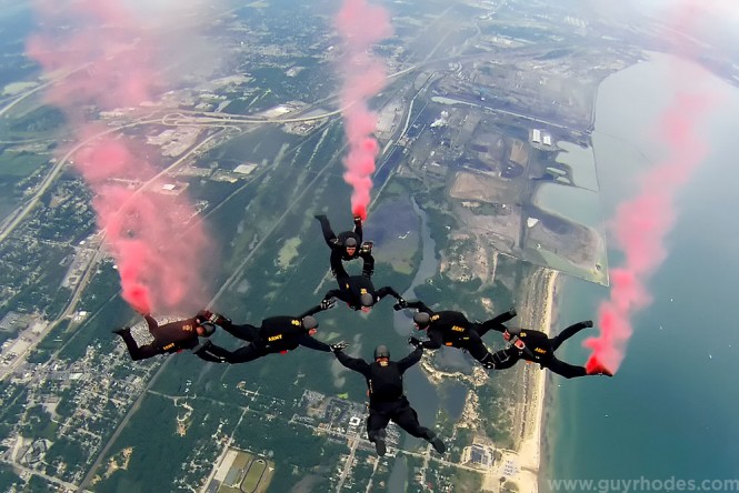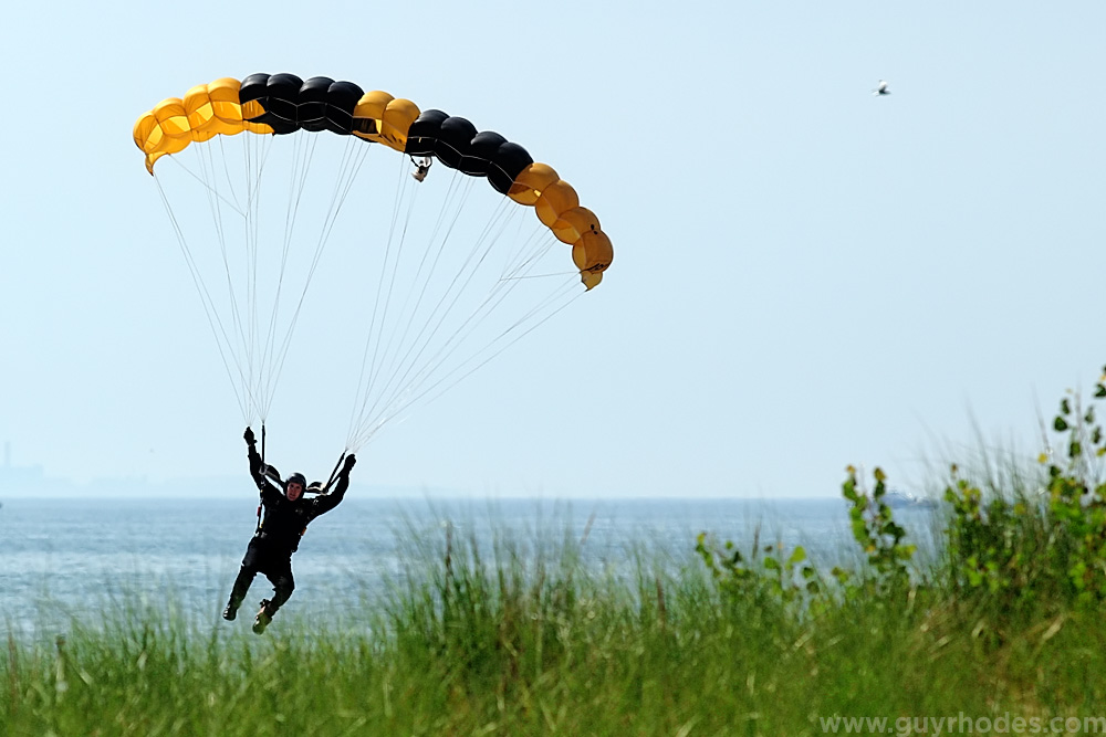 Click above for a time lapse video comprised of every frame the Go Pro camera shot (249 total) on the way down with Sergeant Sanborn. You’ll notice me in the jump plane turning it on at the beginning of the movie, as well as members of the Golden Knights (all very familiar with Go Pro cameras) turning the camera off for me down on the beach.