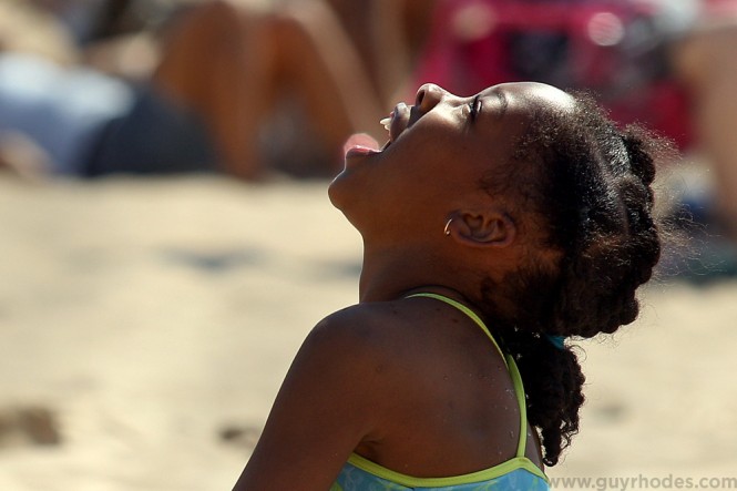 Eight-year-old Mercedes Curtis of Gary, Ind., looks to the sky as members of the U.S. Army Golden Knights Parachute Team begin their descent during the Gary South Shore Air Show held at Marquette Beach in Gary. Documenting the show from the beach was a first for me this year, and allowed me to capture some nice images of the crowd interacting with the show overhead.