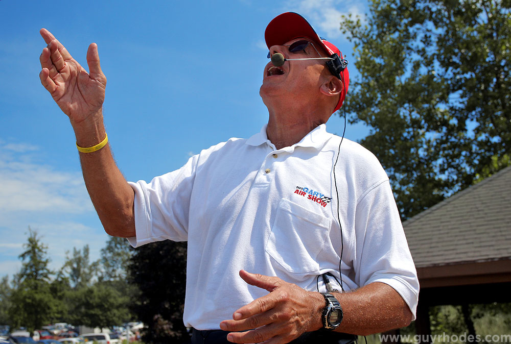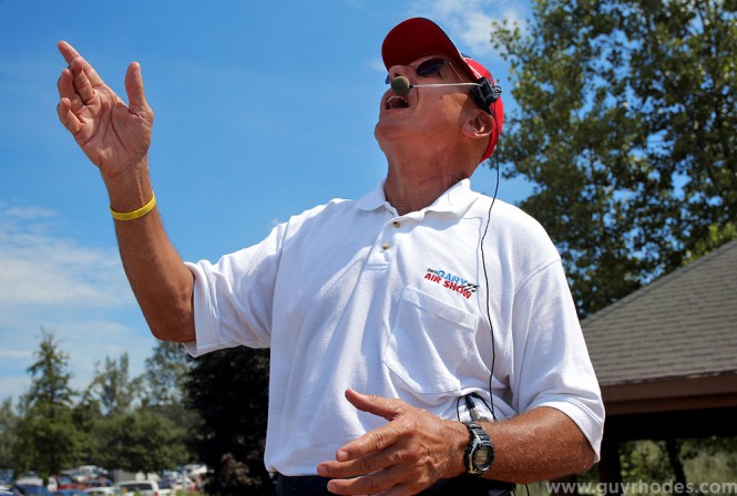 Gary South Shore Air Show announcer Herb Hunter of Daytona Beach, Florida, narrates the Aerostars Formation Aerobatic Team during the show held at Marquette Beach. When not announcing air shows, Hunter flies Boeing 747’s for United Airlines.